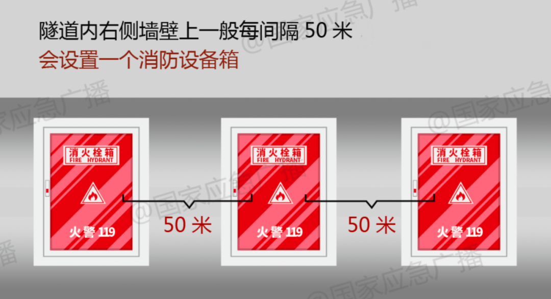 隧道内的安全通道分为人行和车行两种,分别设置有指示牌。观察疏散标志,逆风反向选择就近通道,用毛巾或衣物沾水遮住口鼻,低姿有序弯腰逃生。